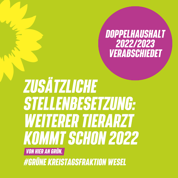 Vor dem Hintergrund des Aufgabenzuwachses und der deutlichen Arbeitsüberlastung des Amtstierarztes wurde auf unseren Antrag hin entschieden, diese Stelle bereits jetzt auszuschreiben und noch in diesem Jahr zu besetzen.