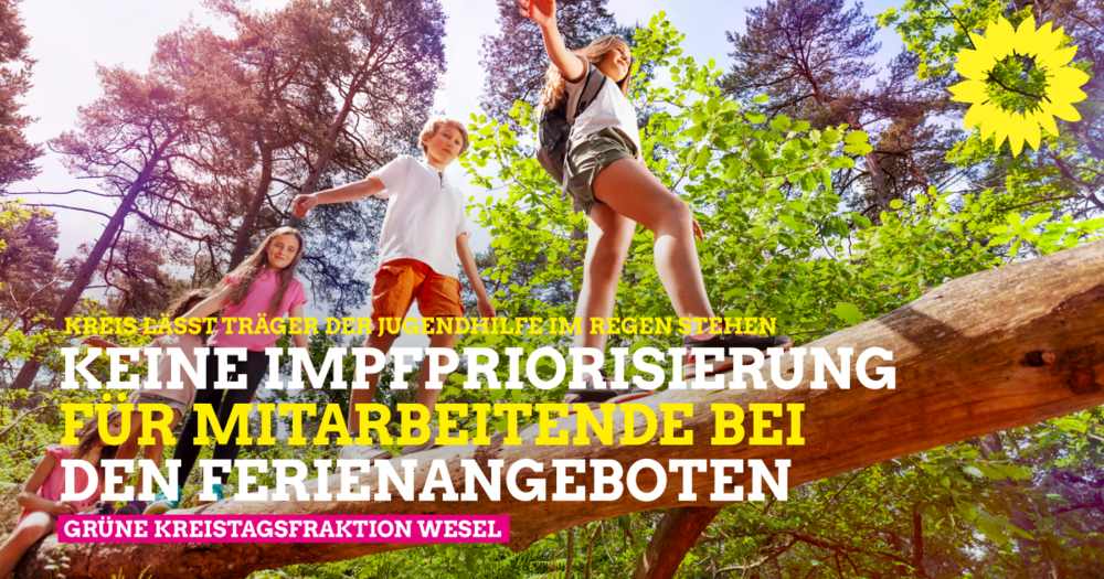 Umso bedauerlicher ist es, dass diese Gruppe bei der Planung der Impfpriorisierung einfach vergessen wurde. „Ausdrücklich zu begrüßen,“ so Trick, „ist die flexible Haltung der Träger, die jetzt kleinere Maßnahmen planen, um so den Kindern doch noch Ferienfreuden zu bereiten. Das verdient unser aller Respekt.“ Die Kreisverwaltung hat zugesagt, diese Maßnahmen kurzfristig zu genehmigen.