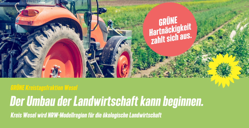 Die Kreistagsfraktion der Grünen verbucht den Zuschlag der Landesregierung für die Teilnahme am Modellprojekt Ökolandbau als Erfolg ihrer Hartnäckigkeit. Bereits im September letzten Jahres hatten wir den damaligen Landrat aufgefordert, die Voraussetzung für die Bewerbung zu schaffen, da aus unserer Sicht die Voraussetzungen für den Kreis Wesel „geradezu ideal“ sind. Noch vor der Sommerpause hatten wir die Kreisverwaltung aufgefordert einen Sachstand zur Bewerbungslage mitzuteilen. Hubert Kück, Fraktionsvorsitzender der GRÜNEN-Kreistagsfraktion freut sich nun, „dass wir durch unsere Initiative und Hartnäckigkeit dafür gesorgt haben, dass sich der Kreis überhaupt für die Vergabe als Modellregion und somit für den ökologischen Landbau beworben hat. Ich glaube kaum, dass seinerzeit unter Füh[1]rung von Landrat Dr. Müller etwas unternommen worden wäre. Auch deshalb freut es uns umso mehr, dass sich das NRW-Umweltministerium entschieden hat, auch den Kreis Wesel neben dem Kreis Kleve zur Modellregion für den Ökolandbau zu bestimmen.“