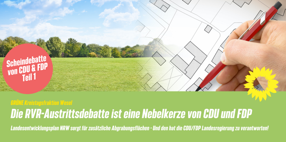 Die GRÜNE Kreistagsfraktion spricht sich zum jetzigen Zeitpunkt gegen eine Austrittsdebatte aus dem Regionalverband Ruhr (RVR) aus und stellt fest, dass sowohl CDU als auch FDP mit ihrer Nebelkerzenstrategie bewusst vom Kern des eigentlichen Problems ablenken wollen, um ihre eigenen Entscheidungen in Düsseldorf zu vertuschen.