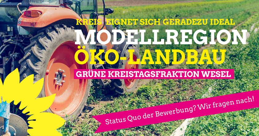 Die Kreistagsfraktion der Grünen verstärkt jetzt den Druck, damit der Kreis Wesel Modellregion für Ökolandbau wird. Hubert Kück bezeichnet die Voraussetzungen im Kreis Wesel dafür als „geradezu ideal“. Die GRÜNE Kreistagsfraktion hat die Kreisverwaltung aufgefordert, für die nächste Sitzung des Umwelt- und Planungsausschusses, Anfang Juni, einen Sachstandsbericht zum Bewerbungsverfahren vorzulegen.