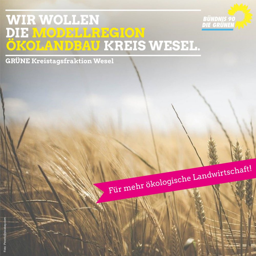 Wir wollen mehr ökologische Landwirtschaft in unserem Kreis und beauftragen daher die Kreisverwaltung, die Vorrausetzungen für eine Bewerbung als Modellregion beim Ökolandbau-Projektes des Landes zu prüfen.
