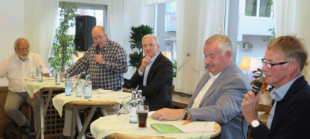 Auf der Basis dieser Zahlen begann Moderator Andreas Vollmert von Best Words mit der Befragung der Podiumsteilnehmer. Dazu gehörten als Landwirte der Landtagsabgeordnete Norwich Rüße, Kreislandwirt Wilhelm Neu, Martin Ramschulte von der Arbeitsgemeinschaft bäuerlicher Landwirtschaft und Dr. Michael Harengard aus Münster als Mitglied des BUND-Landesvorstands.