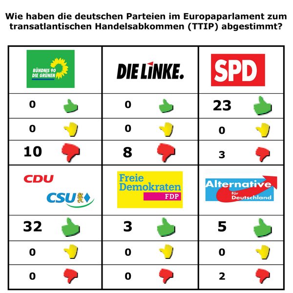 Das Plenum des Europaparlaments hat am gestrigen Donnerstag seine Position zu TTIP beschlossen. Die Schlussabstimmung endete mit 436 zu 241 für TTIP.